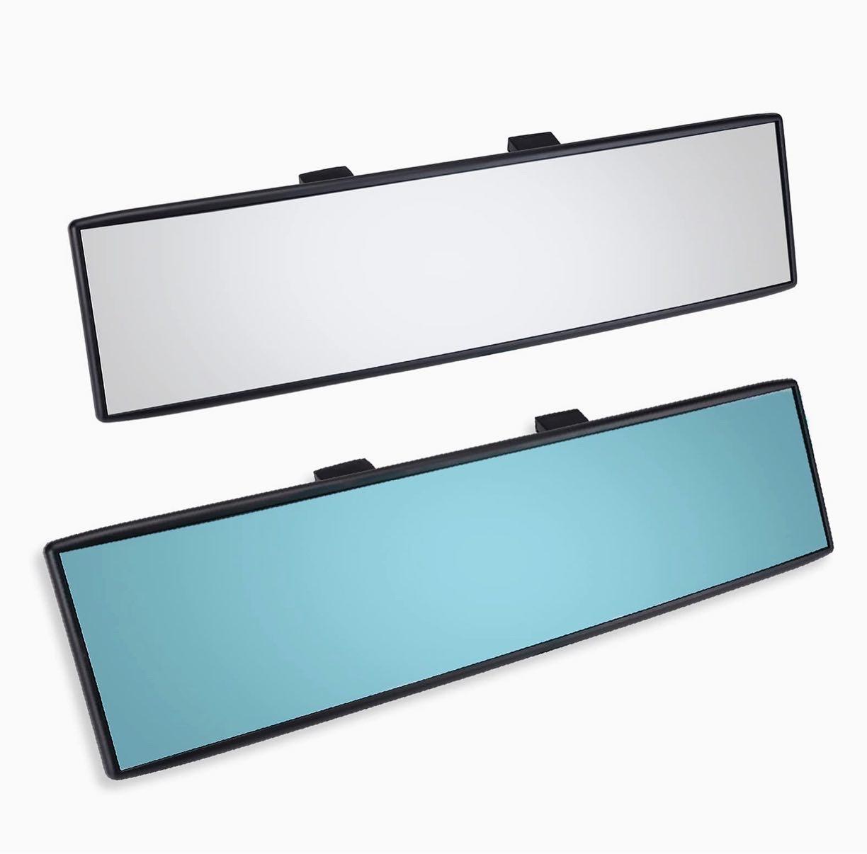 Boost visibility 2x with the best clip-on rearview mirror extension. 12-inch panoramic View Mirrors model features anti-glare blue tint and shatterproof glass—clips on in seconds for SUVs or minivans, eliminating blind spots.